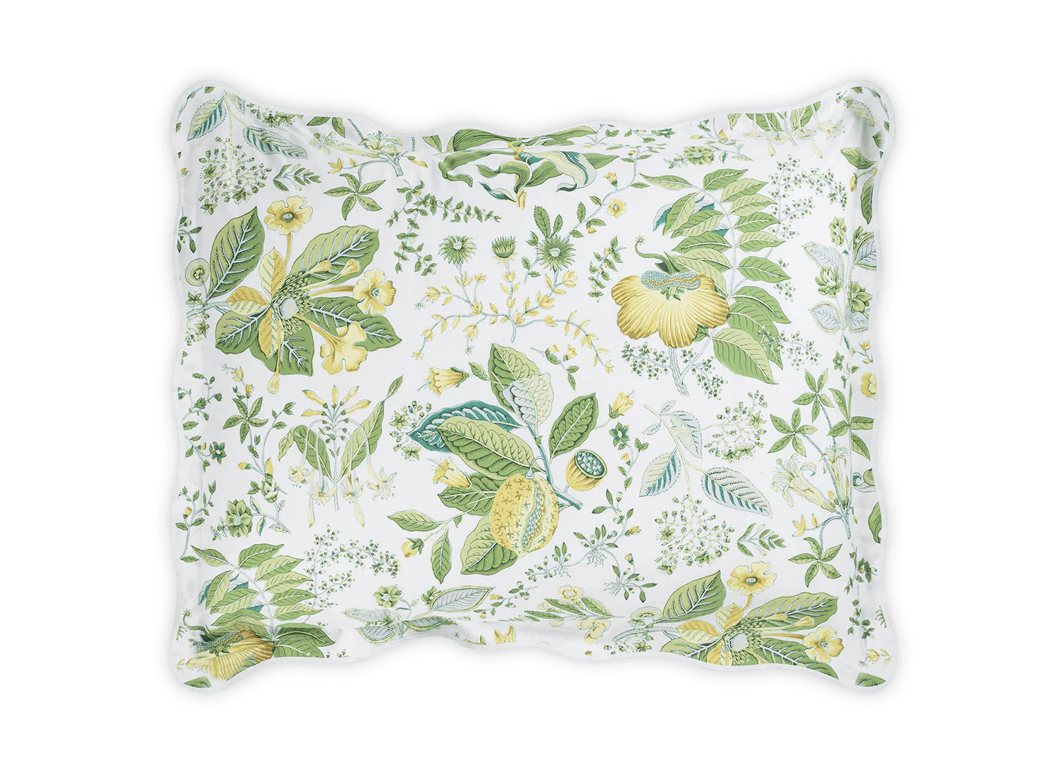 Based on an 18th century design from Schumacher’s archive, Pomegranate reimagines a timeless botanical in four luscious colorways. This vibrant style is printed in Italy on our 500 thread count Luca Egyptian cotton percale and finished with the subtlest scalloped edge and white tape—a perfect pairing of Schumacher artistry and Matouk craftsmanship.